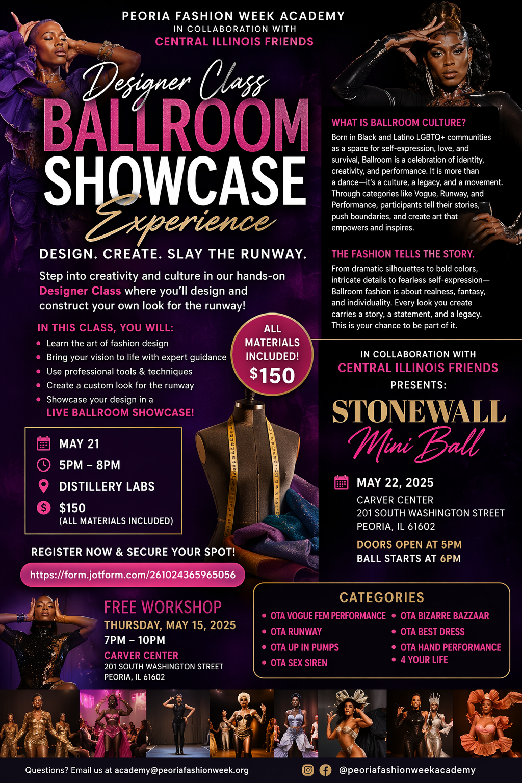 Peoria Fashion Week Academy is dedicated to fashion education, mentorship, and creative expression in the Midwest. Every class, every event, every program fuels the next generation of creative talent.